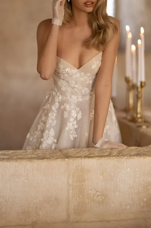 A Line Sweetheart Sticker Countryside Style Wedding Bridal Dress