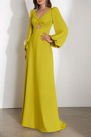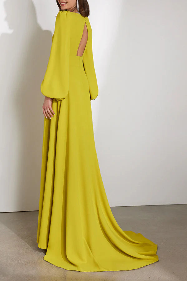 Elegant and luxurious V-neck long sleeved empire mother of the bride dress