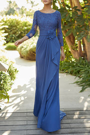 Fit spoon 3/4 sleeve two-color lace decal flower mother of the bride dress