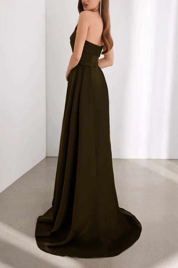 Satin A-line strapless empire trailing mother of the bride dress