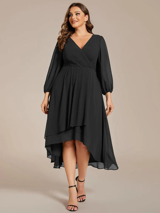Plus Size Chiffon A-Line Long Sleeves Asymmetrical Hem Wedding Guest Dress