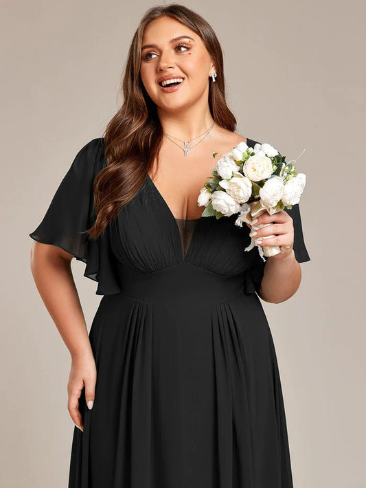 Plus Size Elegant Lotus Sleeves Chiffon Bridesmaid Dress