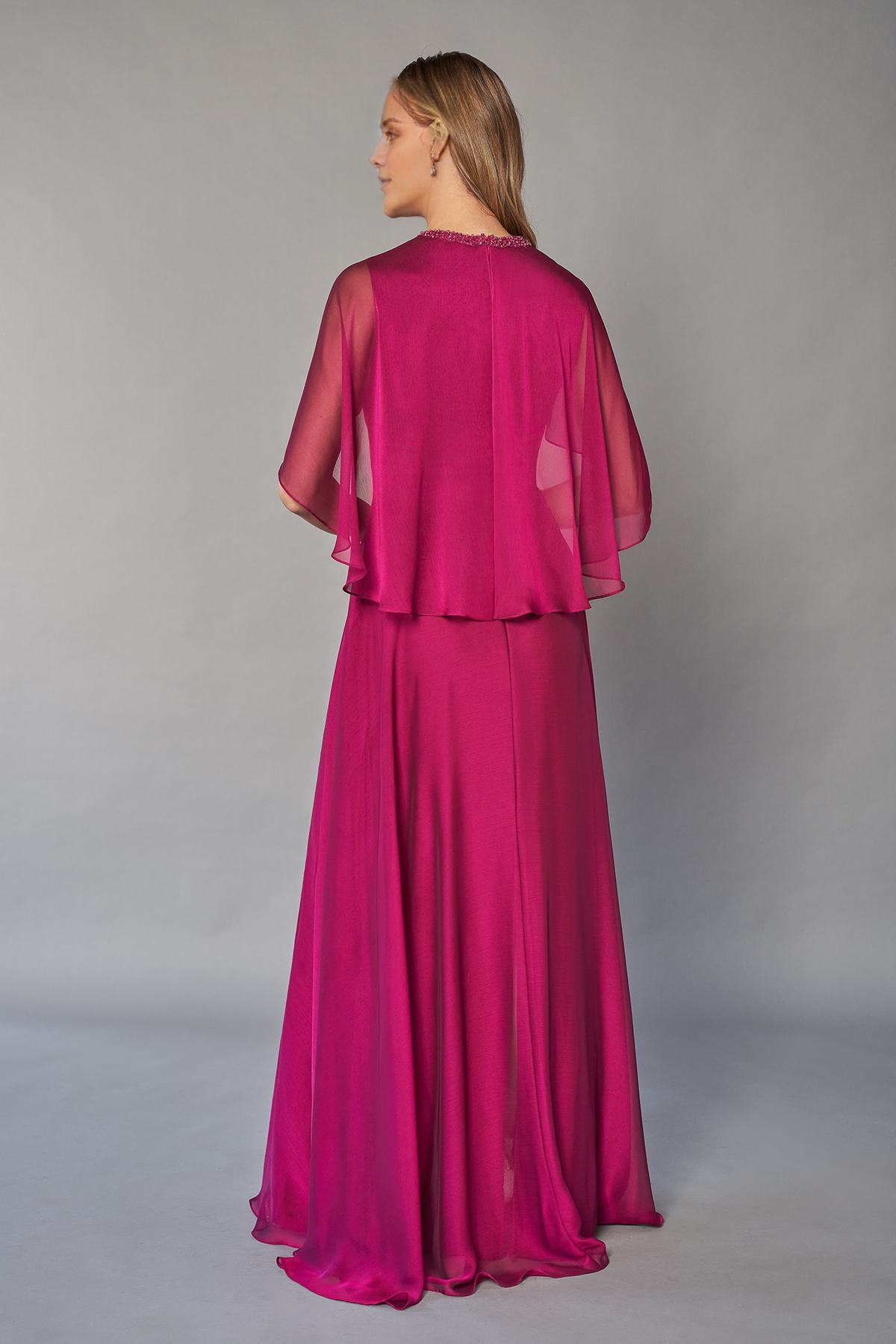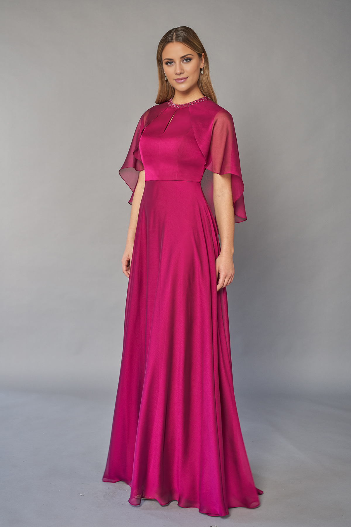 A-förmiger, handgefertigter Hut mit schwebender Perlendekoration und bodenlanges Kleid für die Brautmutter