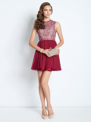 A-Linie/Princess-Linie Juwel-Ausschnitt Ärmellos Chiffon Perlen verziert Kurz/Mini Kleider