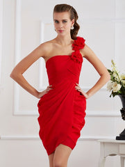 Robe de soirée courte en mousseline de soie, asymétrique, sans manches, avec des fleurs faites à la main