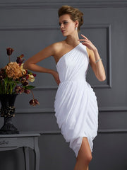 Robe de soirée courte en mousseline de soie, fourreau/colonne, asymétrique, sans manches, plissée