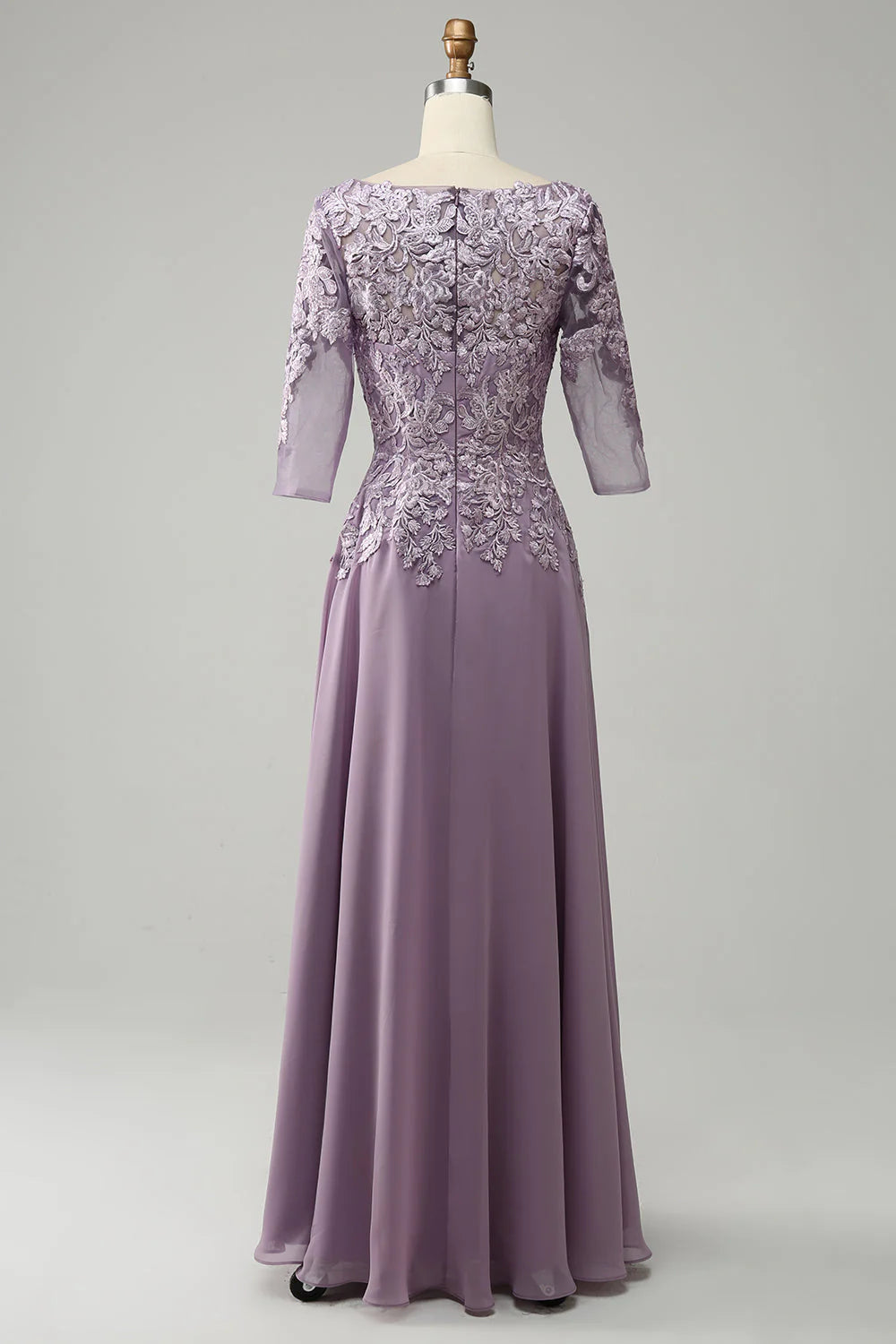 Robe de mère de la mariée en mousseline de soie et dentelle grise et violette