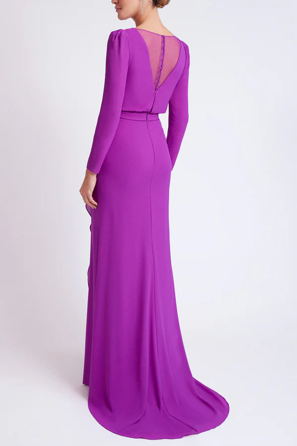Robe de mère de la mariée à manches longues et col en V, coupe minimale, ourlet à volants - US 2 / UK 6 / UE 32