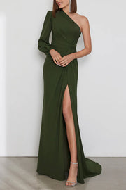 Robe sexy à une épaule et manches longues avec fente latérale pour la mère de la mariée - US 2 / UK 6 / UE 32