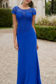 Robe en dentelle à manches courtes avec décolleté en cuillère, idéale pour la robe de la mère de la mariée