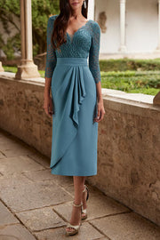 Robe longue à volants et col en V, manches 3/4, pour mère de la mariée
