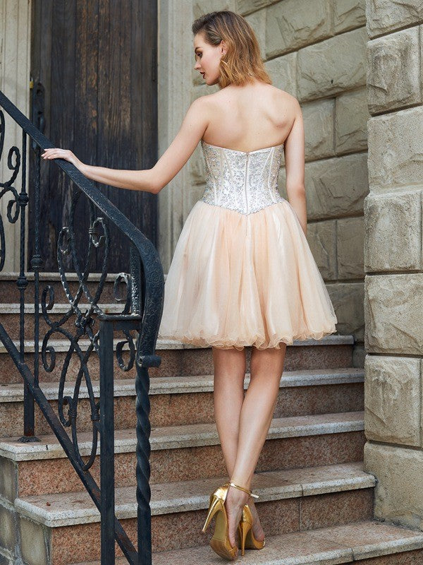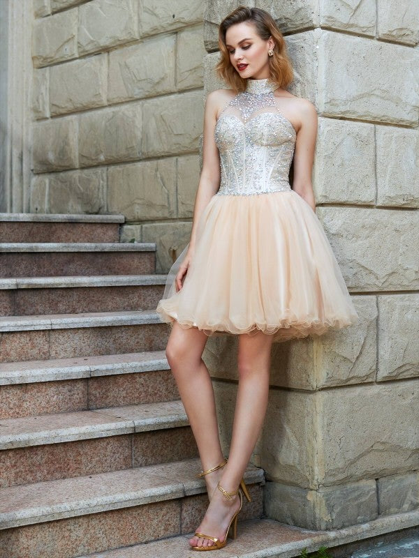 Robe courte/mini en filet perlé sans manches, coupe A-Line/Princesse, dos nu