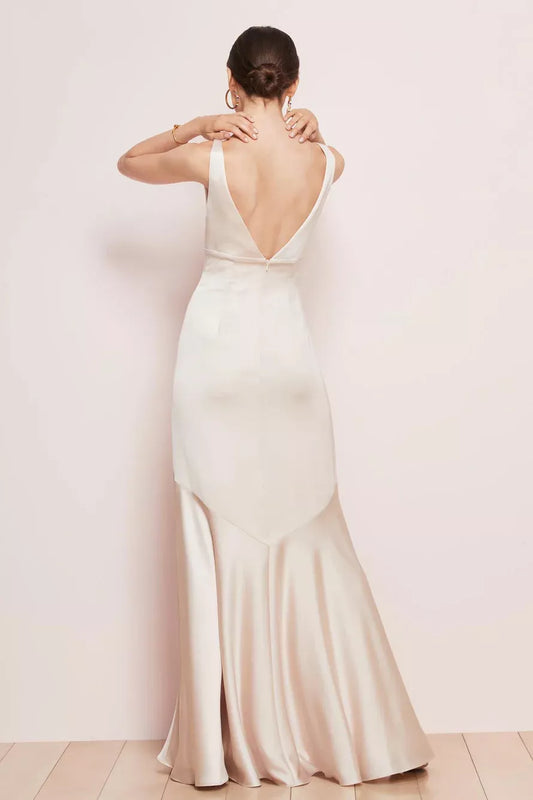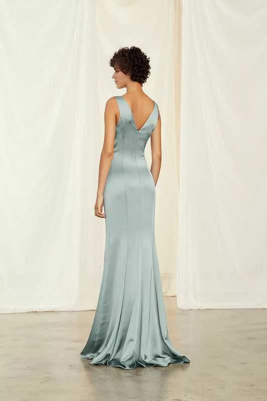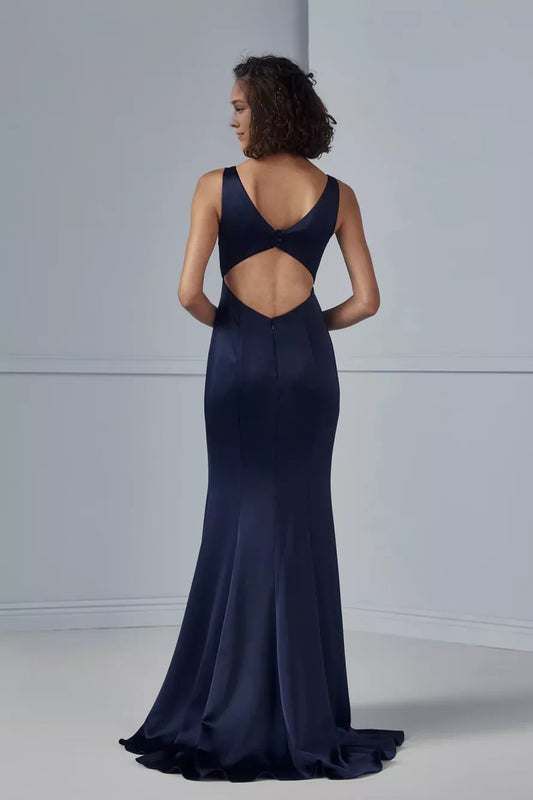 V-neck off shoulder sleeveless backless side slit and floor length Prom dress