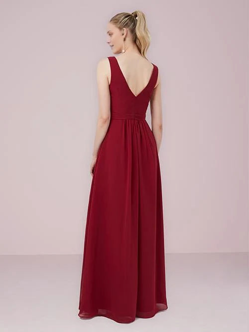 Elegant A-Line Burgundy V-Neck Sleeveless Back Zip Flowy Maxi Prom Dress