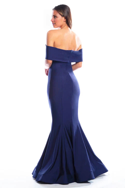 Elegant Navy Blue Off-Shoulder Neck Sleeveless Back Zip Mermaid Floor-Length Prom Dress