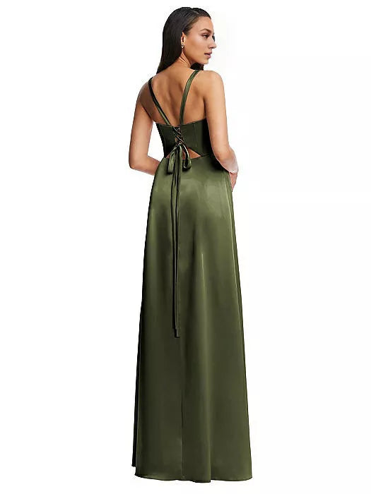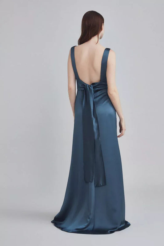 Square neckline off shoulder sleeveless thin shoulder straps backless and floor length Prom dress