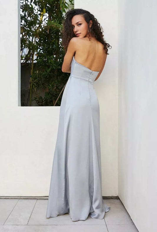 Robe de bal à épaules dénudées, sans manches, sans bretelles, dos nu, fente latérale et longueur au sol