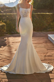 Robe de mariée queue de poisson autocollante en dentelle cuillère illusion - Ivoire