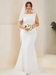 Robe de mariée moulante sans manches à col rond et queue de poisson grande taille - Blanc