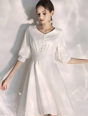 Petites robes blanches de réception, robes de mariée trapèze, col en V, manches mi-longues, tissu extensible, robes de mariée avec
