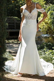 Robe de mariée sexy à paillettes et décolleté en V, dos nu - Blanc