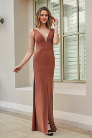 Robe de bal Yidibang à col en V, épaules dénudées, sans manches, dos nu, fente et longueur au sol
