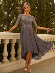 A-Line/Princess Chiffon Applique Scoop 1/2 Sleeves Asymmetrical Dresses