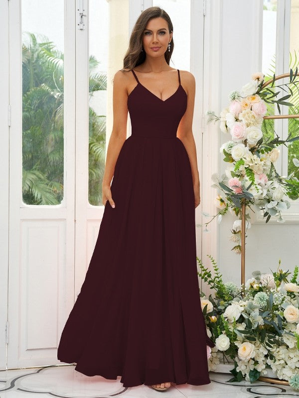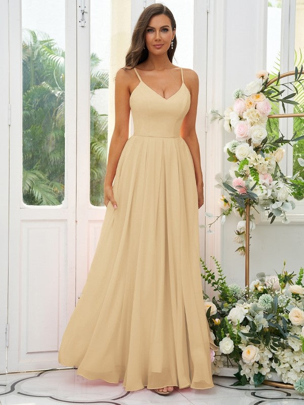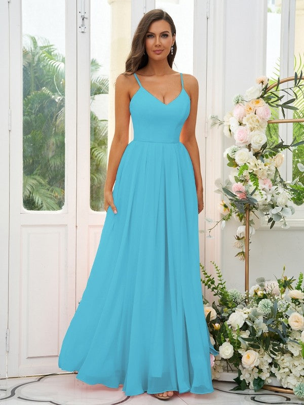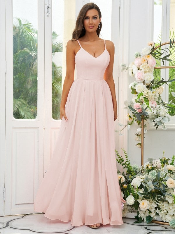 A-Line/Princess Chiffon Ruffles V-neck Sleeveless Floor-Length Bridesmaid Dresses