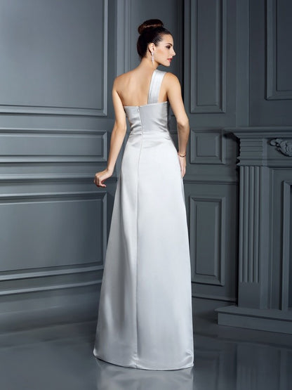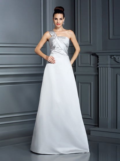 A-Line/Princess One-Shoulder Sleeveless Long Satin Dresses