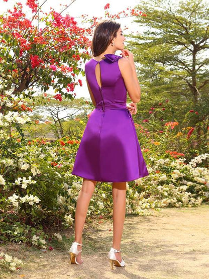 A-Line/Princess Scoop Bowknot Sleeveless Short Satin Bridesmaid Dresses