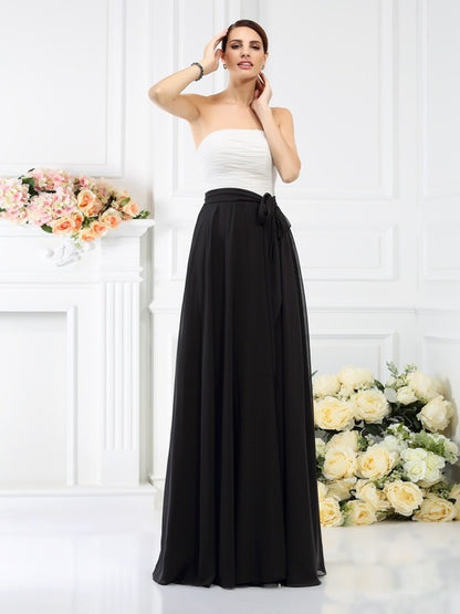 A-Line/Princess Strapless Sash/Ribbon/Belt Sleeveless Long Chiffon Bridesmaid Dresses