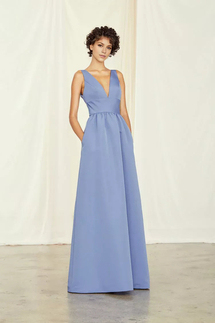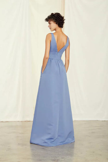 Deep V-neck off shoulder sleeveless backless and floor length Prom dress