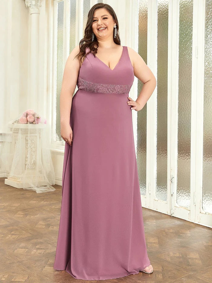 Plus Size Backless Lace A-Line Chiffon Bridesmaid Dress