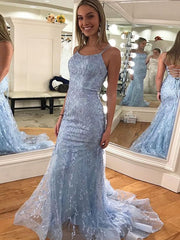 Sheath/Column Lace Applique Straps Sleeveless Sweep/Brush Train Dresses