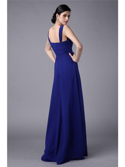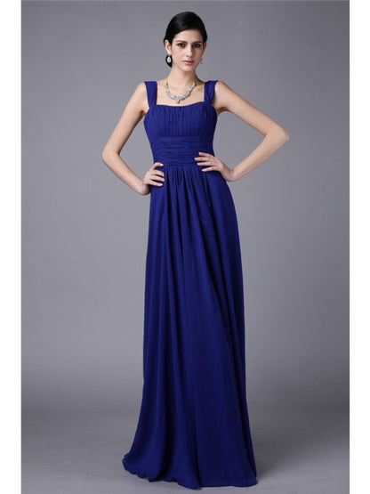 Sheath/Column Straps Sleeveless Pleats Long Chiffon Bridesmaid Dresses