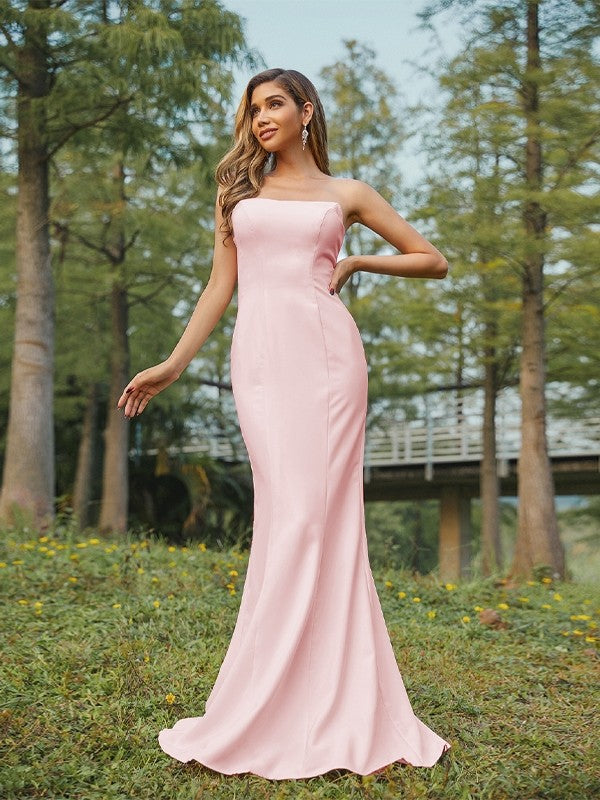 Sheath/Column Stretch Crepe Ruched Strapless Sleeveless Sweep/Brush Train Bridesmaid Dresses