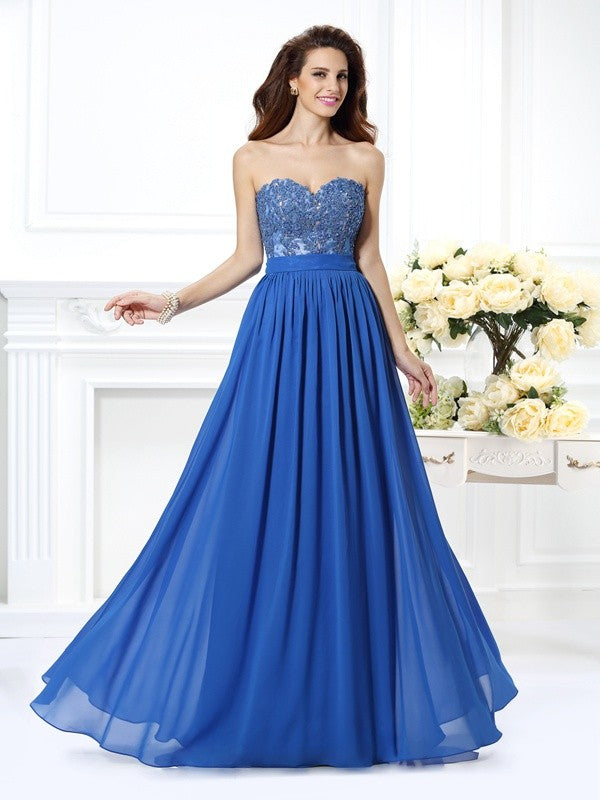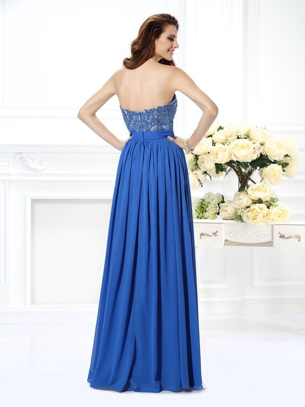A-Line/Princess Sweetheart Applique Sleeveless Long Chiffon Dresses