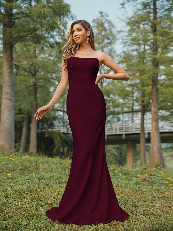 Sheath/Column Stretch Crepe Ruched Strapless Sleeveless Sweep/Brush Train Bridesmaid Dresses